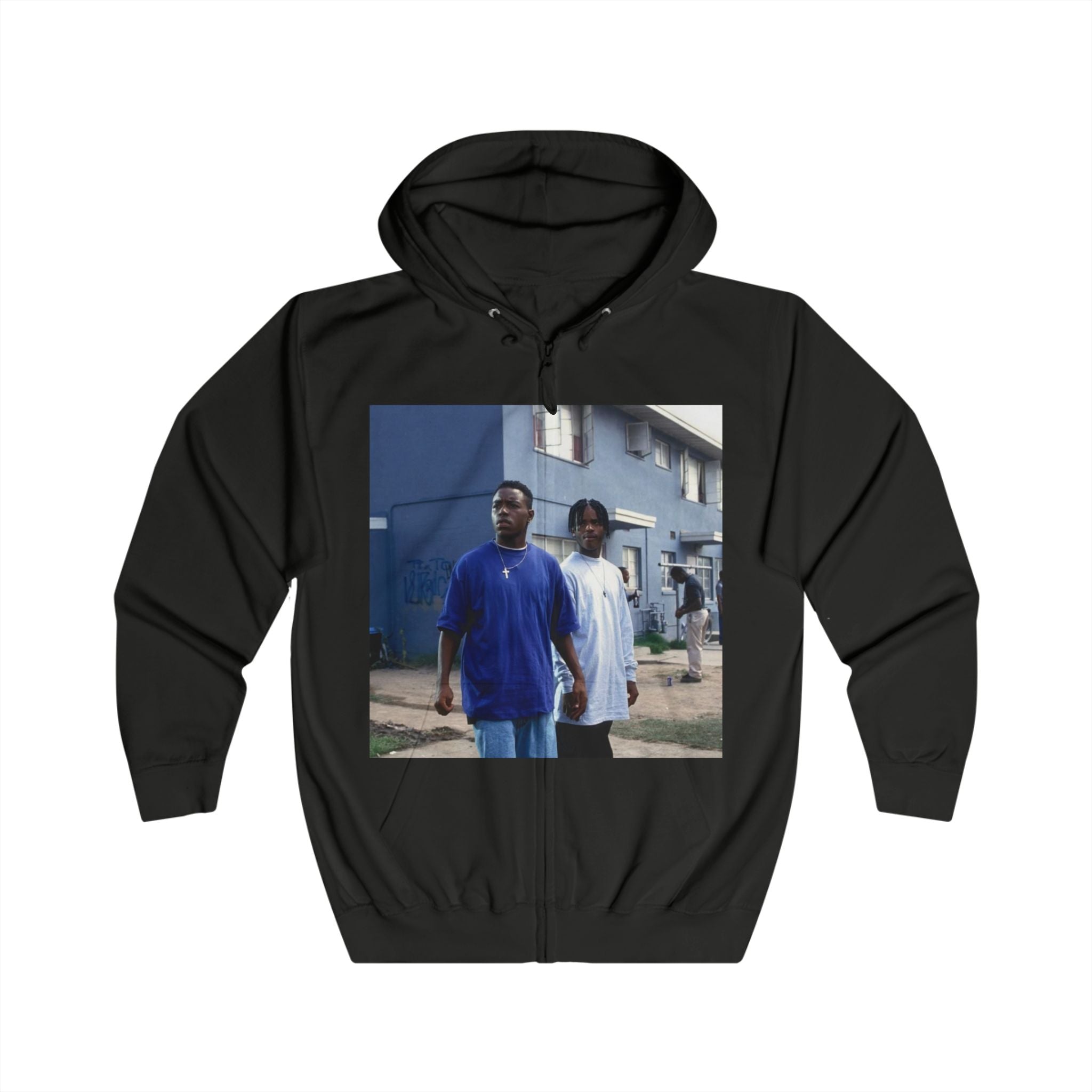 A cozy and nostalgic Hoodie featuring a Menace II Society 90's Movie design. Perfect for fans of the movie and those who love retro vibes. Ideal for casual wear, lounging at home, or attending movie nights with friends. Relevant for 90's movie enthusiasts and individuals looking for a unique and stylish hoodie option.